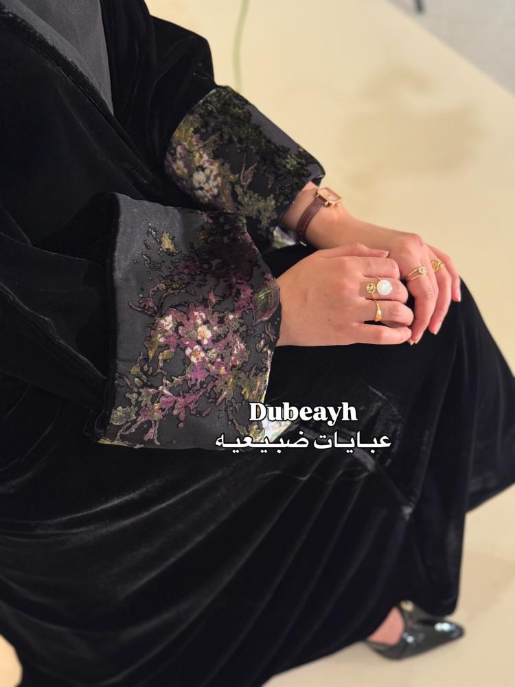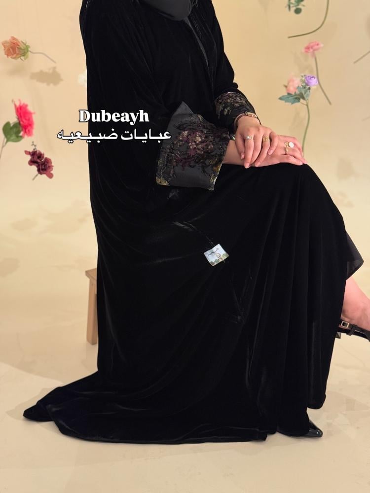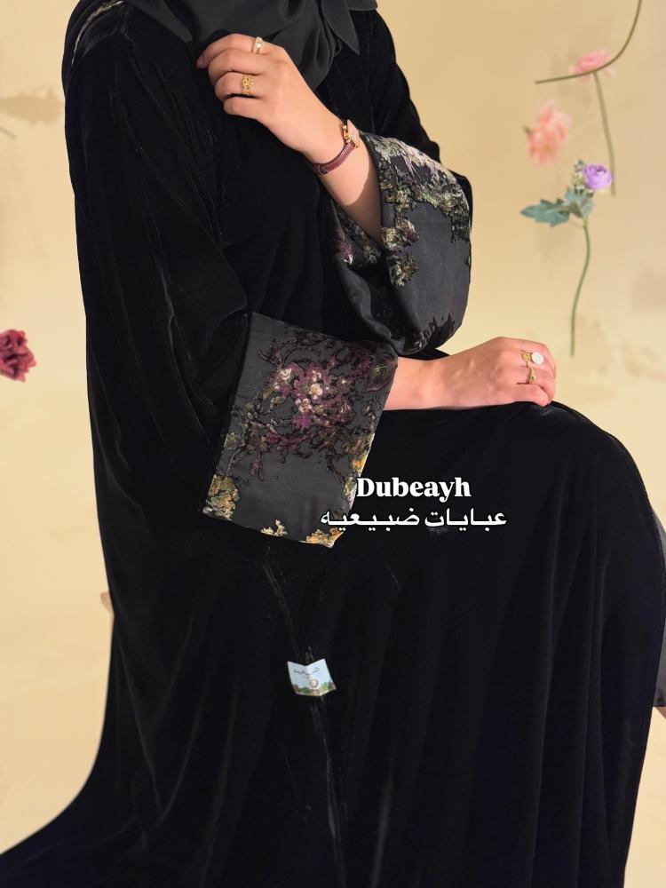 نوع القماش: مخمل اسود + الاكمام شيفون مخمل