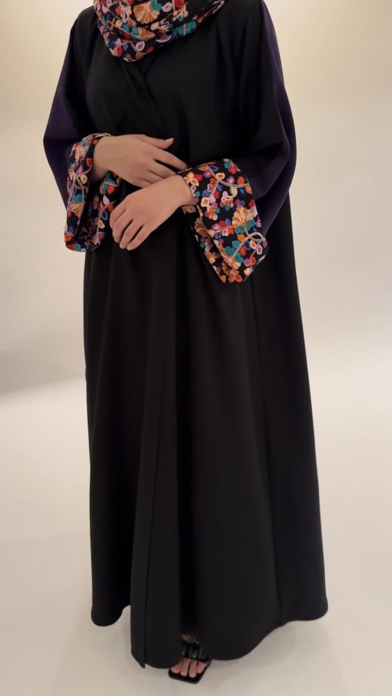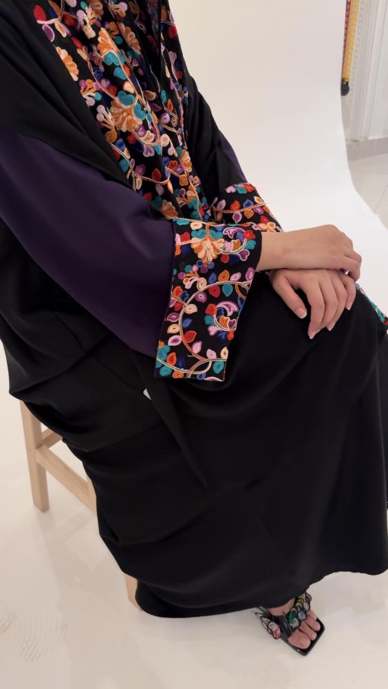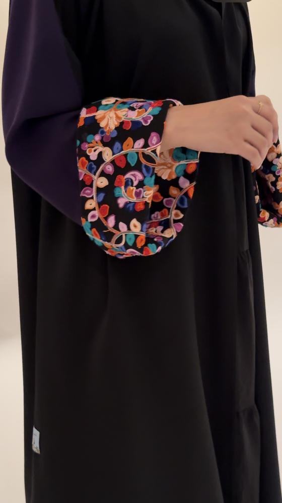 نوع القماش : كريب صيفي + تطريز هندي ملون + نص كم بنفسجي