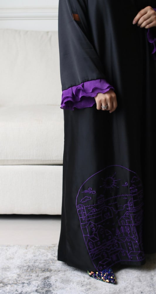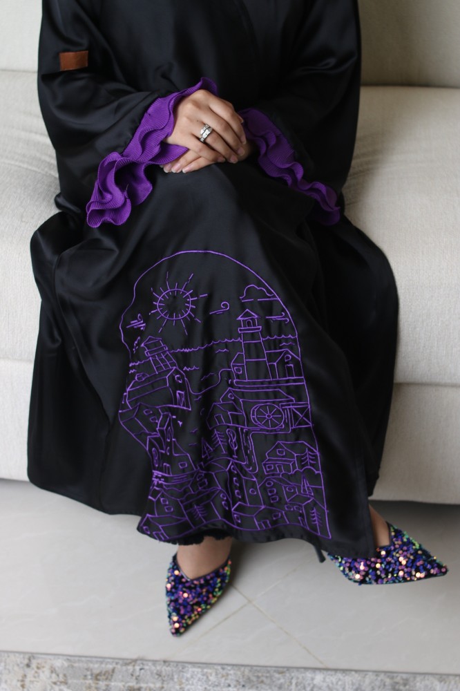 نوع القماش: كريب ستان مطرز باللون الموف