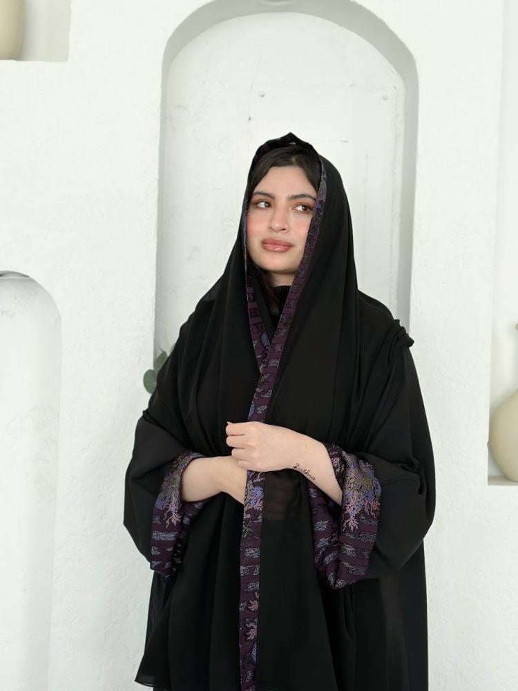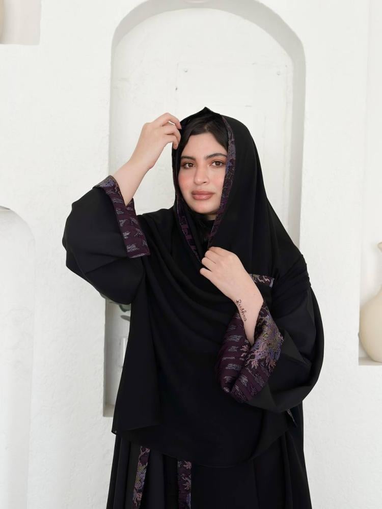 نوع القماش : كريب يونيفورم + اكمام مشجره بنفسجي